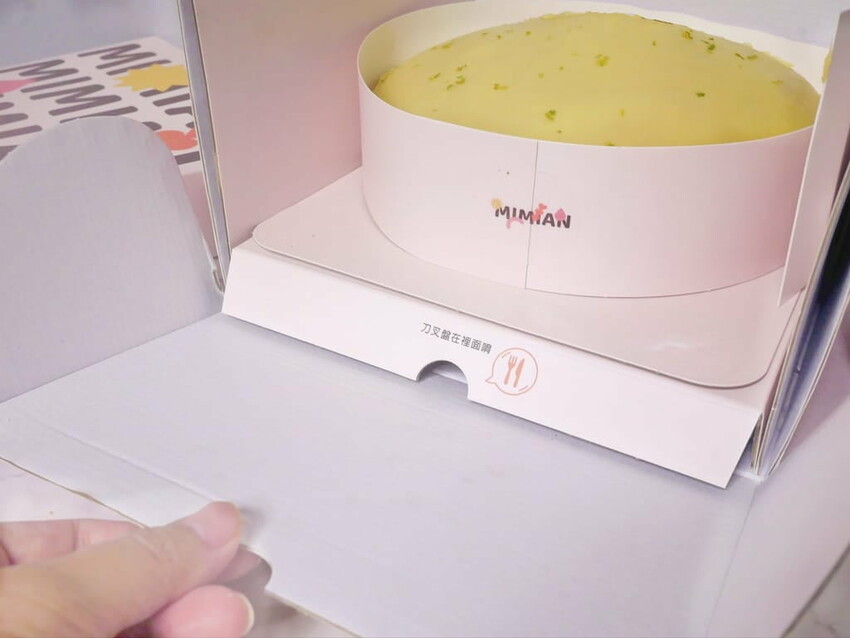 MIMIAN瞇瞇眼 生乳波士頓派從外包裝到附贈的餐具.都充滿細膩質感,湯匙造型可愛. 上面還印了logo別俱創意.從許多小地方都能感受的到店家的用心經營!