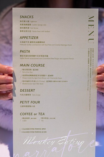 說故事的人Narratore每一季都會更新菜單內容,這次吃到的是剛推出的春季菜單,結合許多當季食材,融入了春天的元素,菜單設計較清爽開胃,搭配主餐不同,價格也會不同。