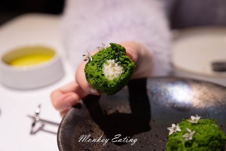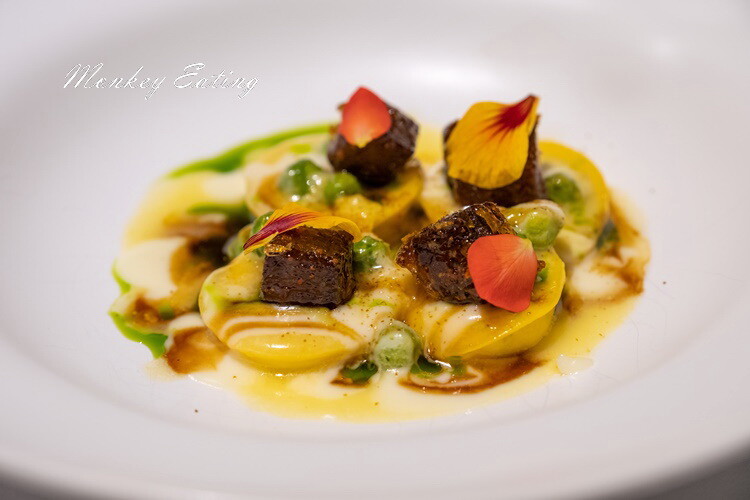 這天最讓我驚豔的一道菜,純蛋黃做的鈕扣餃搭配西班牙起司及ricotta起司,風味相當濃郁