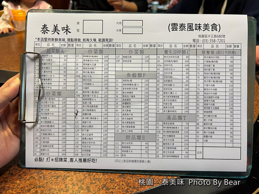 泰美味的菜單只有一頁,直接勾選想吃的再到櫃檯點餐付款即可