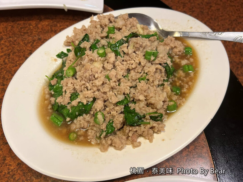 但送上桌後發現,這道料理和打拋豬蠻像的,同樣是用絞肉去炒其它食材