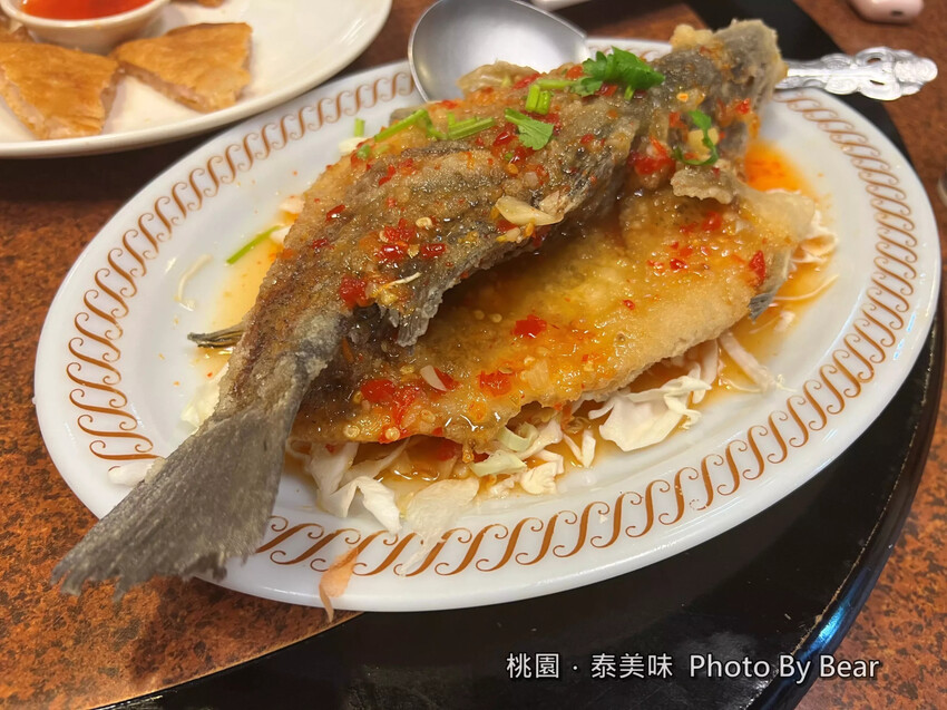 魚皮炸過後有著脆腕的口感,上層還淋上泰式酸甜醬汁