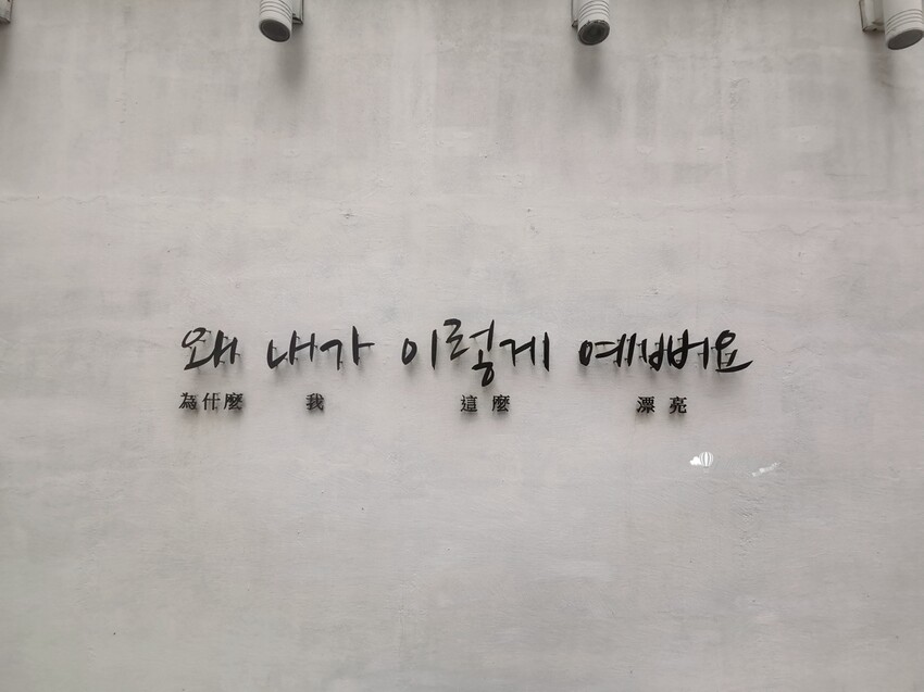 有一面寫著韓文,白色的牆就是最棒的拍照打卡牆。