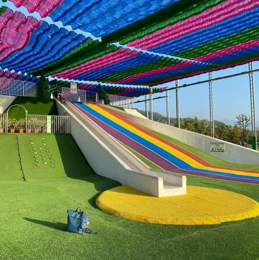 名間親子生態園區是南投最大的親子公園,在2022年底重新開幕,佔地2.6公傾,腹地廣大。各式各樣的遊樂設施,巨型彩虹溜滑梯、沙坑、盪鞦韆、噴水池等,讓孩子玩得不亦樂乎。