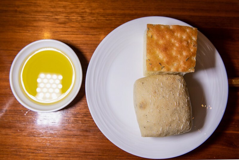 餐前麵包有兩種,雖都是歐美的麵包,但也同樣融入日式麵包的柔軟,附上的橄欖油非常棒。