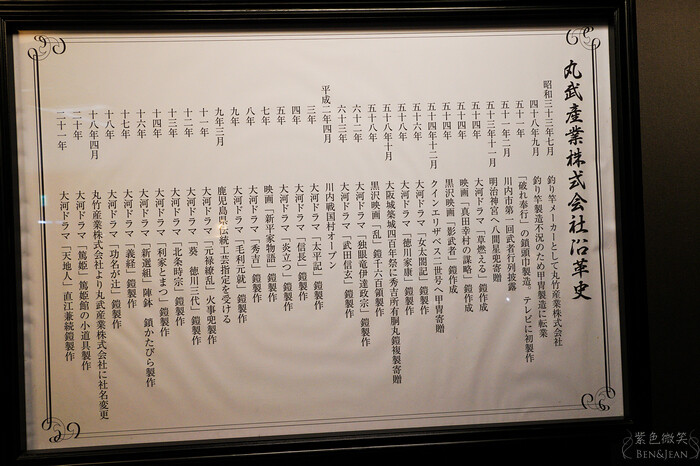 甲冑工房丸武是一間非常特別的觀光工廠,是一家做日本武士的盔甲公司。這裏不但將日本歷代名將的盔甲重現,可以看到歷代名將彷彿就站在眼前,而且也可以換裝體驗哦,穿和服體驗沒什麼特別,穿武將的服飾體驗才叫酷,今天想當武田信玄、明天想當真田幸村,後天想當豐臣秀吉、德川家康,這裏通通可以啦。對日本戰國歷史有興趣的朋友,保證要看個一整天才過癮!! 萬一不懂的話也沒關係,這些盔甲也非常有趣。而且製造過程也相當吸引人哦,絕對看的津津有味