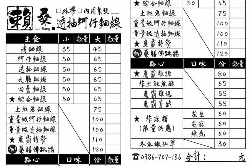 賴桑透抽蚵仔麵線 完整菜單MENU