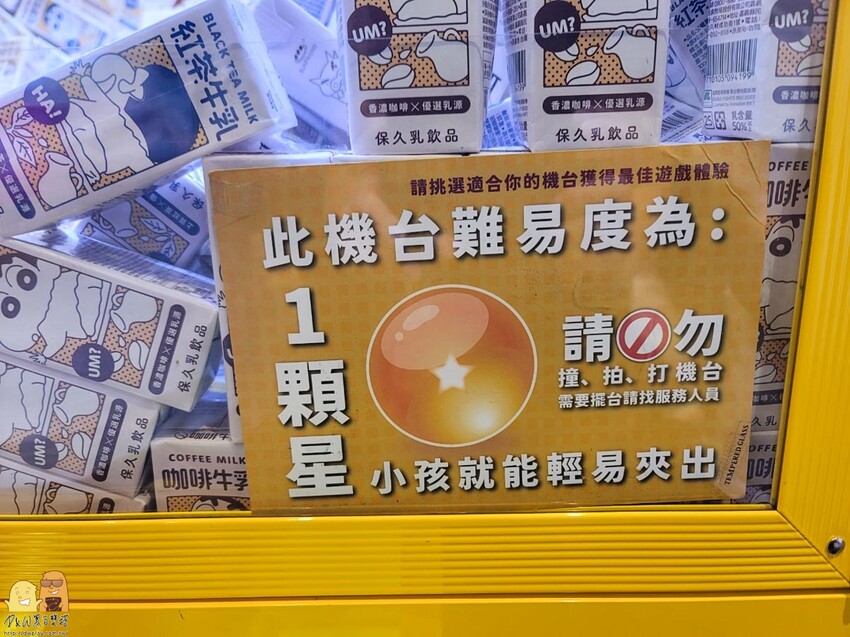 店家也很貼心的會在機台的右下方告知難易度,像這個小新紅茶牛乳難易度是一星