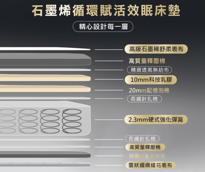 上面一層是高級石墨烯布料,屬於偏硬的床