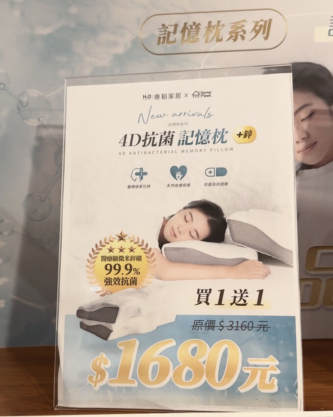 這個枕頭是H&D東稻家居的4D抗菌記憶枕~