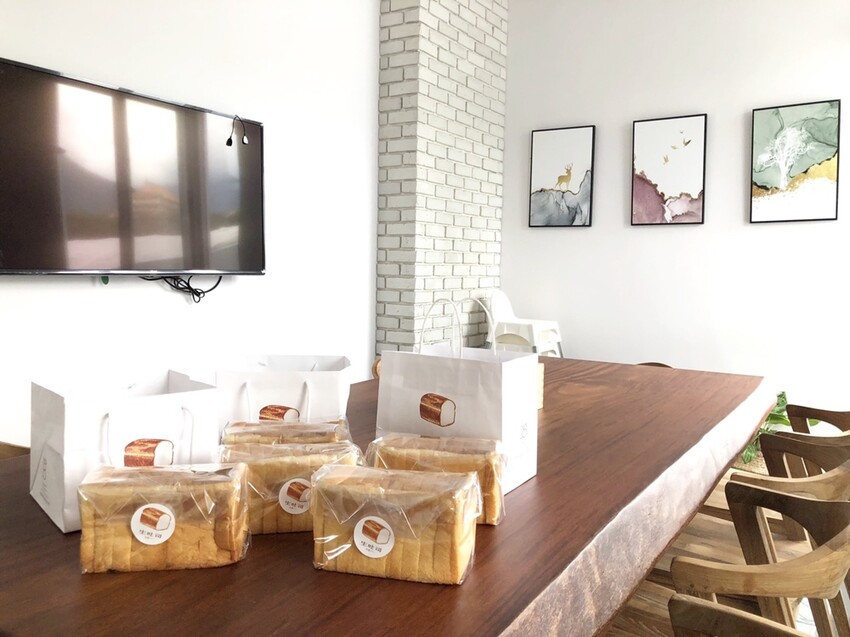 拉拉會幫每間房間準備一條埔里知名排隊美食- 18度C巧克力工房的生吐司(一條130元-160元),這吐司超級柔軟好吃,我可以一次吃完一條也不膩。