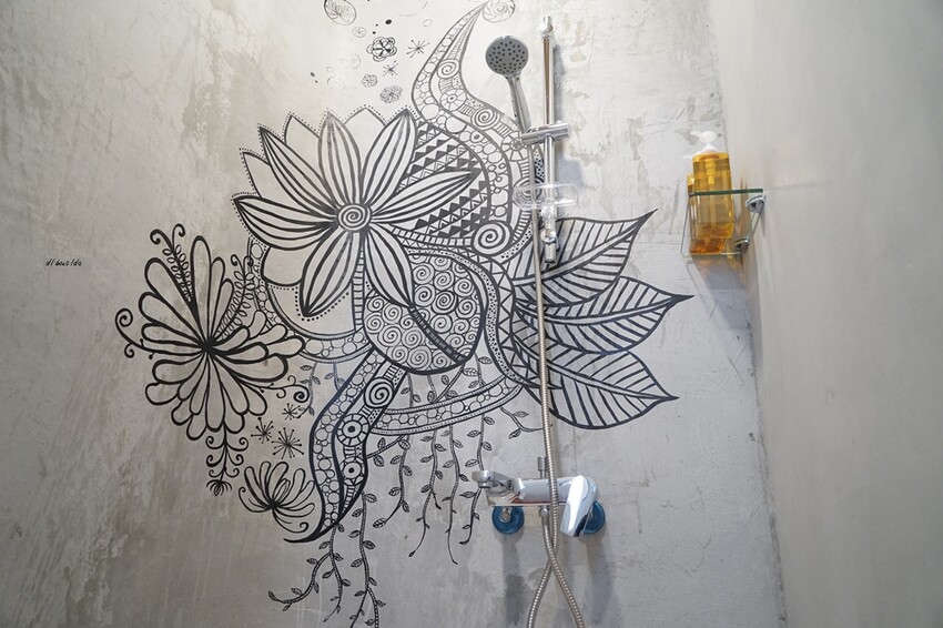 這間的淋浴間還有拉拉的手繪圖騰做裝飾呢!