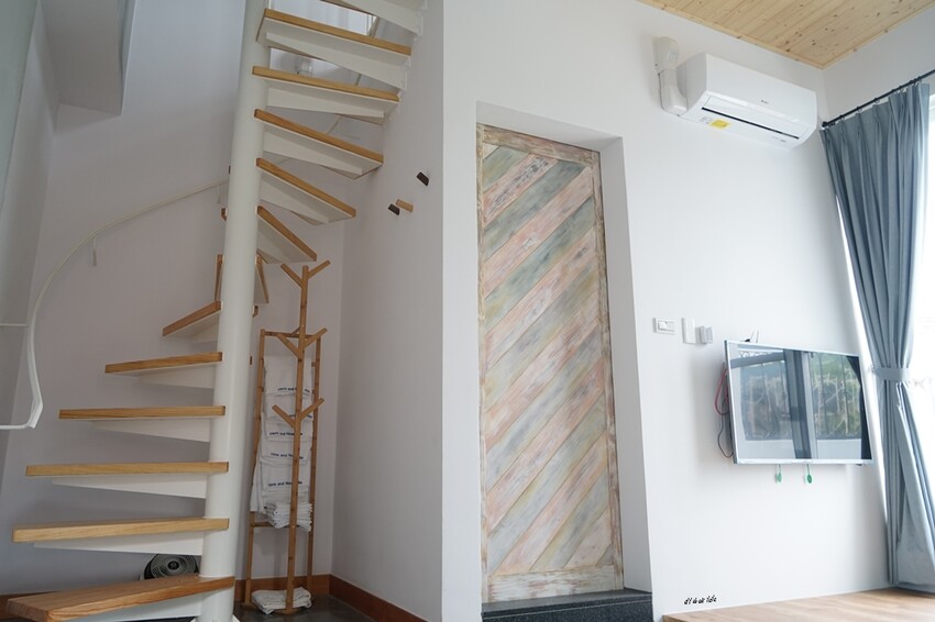 201是希爾拉villa唯一的樓中樓六人房,超多人都好喜歡這間房。這間有好美的旋轉梯,還有特地保留的類清水模水泥牆面。