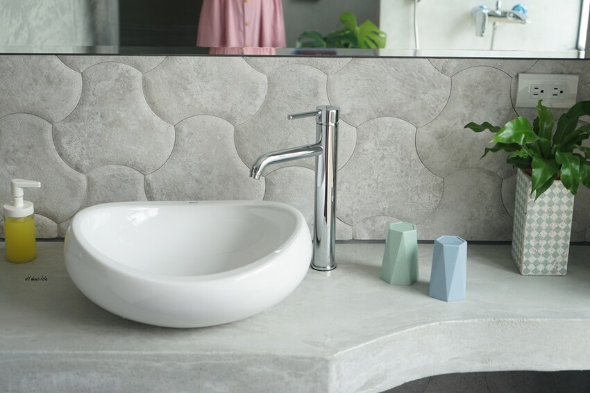 洗手台也是西班牙百年品牌- Roca的設計款,搭配加高龍頭非常好看。