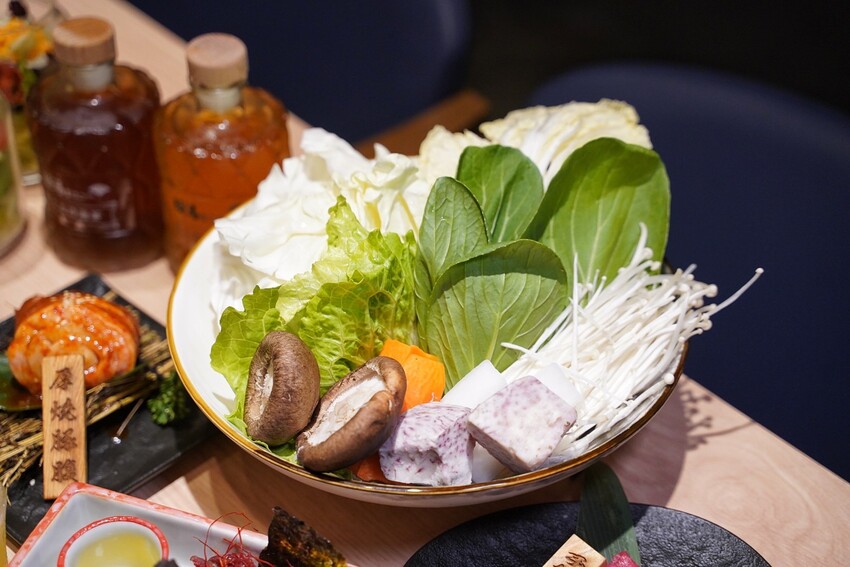 最棒的是還有無限供應的「田園野菜盛」可以吃到飽,包括當季蔬菜、菇類、芋頭等等九種野菜。