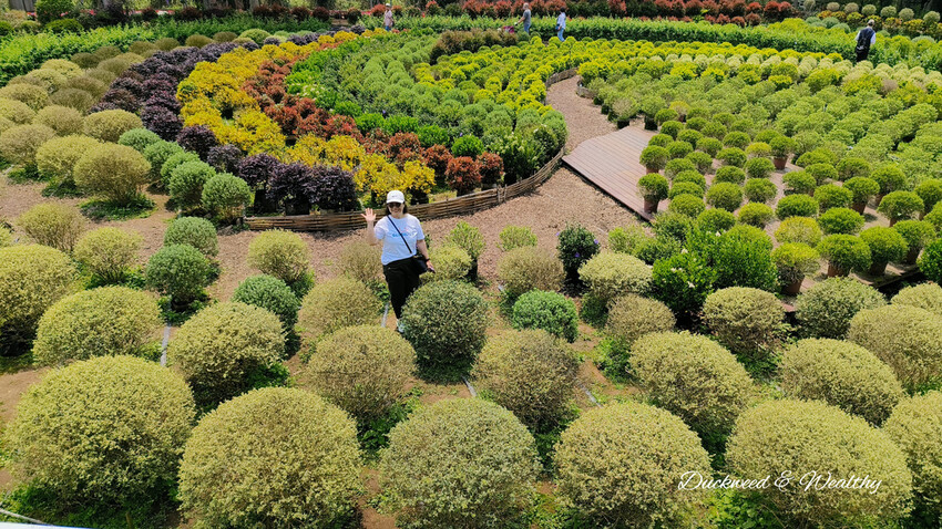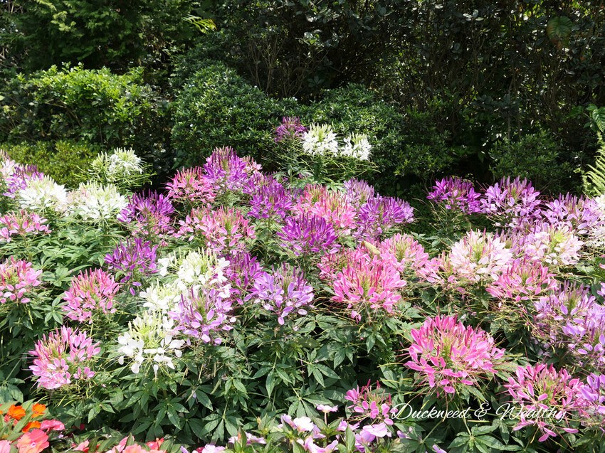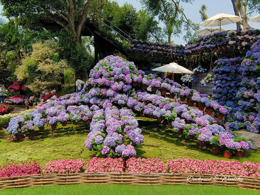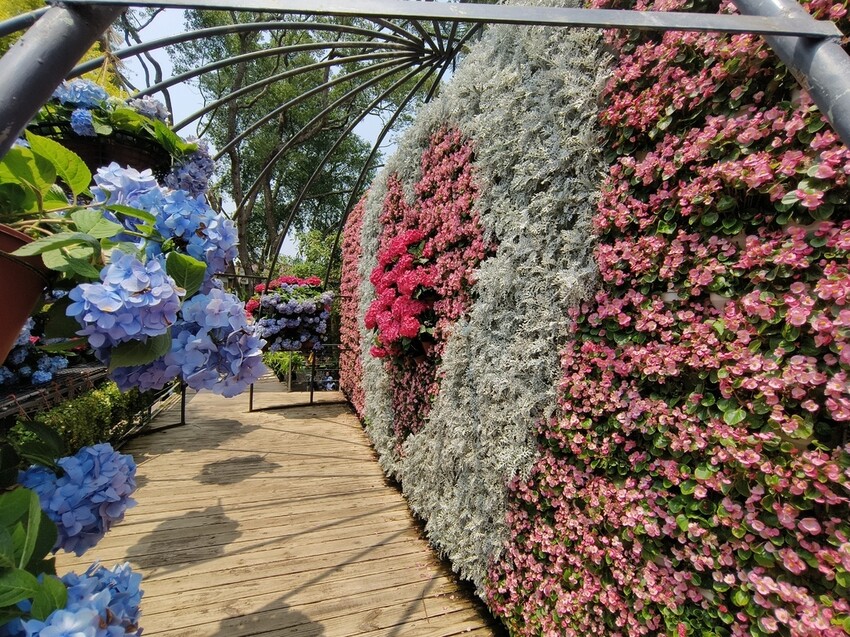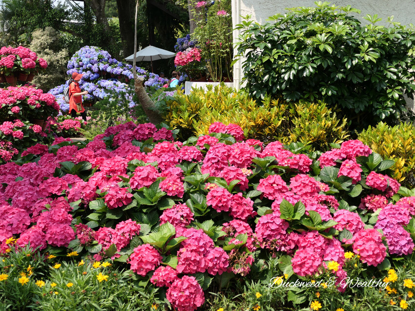 像是現在正值繡球花滿開季節,園區繽紛多彩的繡球花