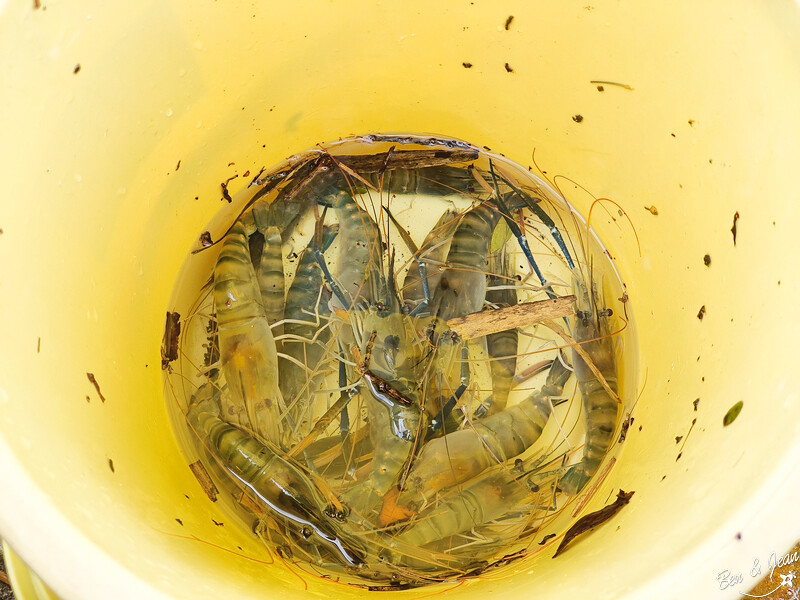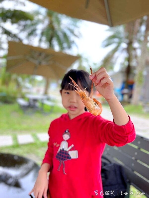 「輕親魚朵生態園區」撈蝦體驗包含代烤服務,許多親子客都是釣魚+撈蝦體驗一起玩。