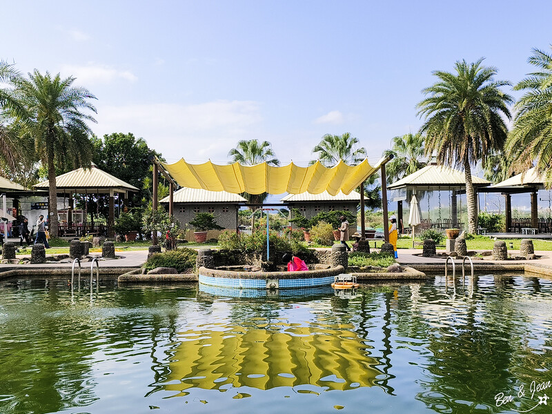 「輕親魚朵生態園區」好有南洋度假風!這裏有不少涼亭及陽傘遮蔽,不用擔心陽光直射或是突然而下的大雨