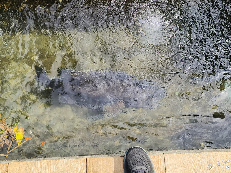 這個魚池非常有趣,裏面竟然可以看到白石斑魚、還有龍膽石斑耶!