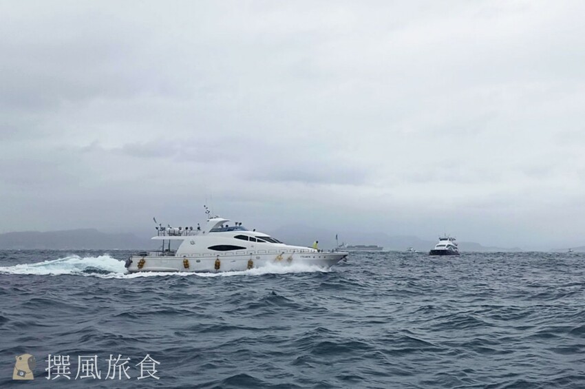 至於搭船是否暈船?撰風個人認為可能性是有的,當日前往時船隻風浪大,但我觀察船上的船員愜意的情況,發現並實驗只要在船外站著,抓好欄杆,隨著海浪的節奏一起晃,很快就習慣了,甚至覺得那晃動時海風吹過的感覺很舒服,只是自己被雨水與海浪弄得全身衣褲鞋襪通通都濕淋淋的。