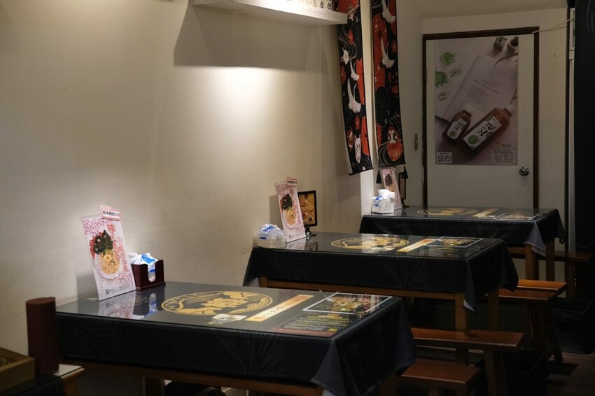 ▼【月樽拉麵】採取自助式用餐模式,提供七味粉和芝麻可以調味,冰箱還有許多飲品能夠自行選購。