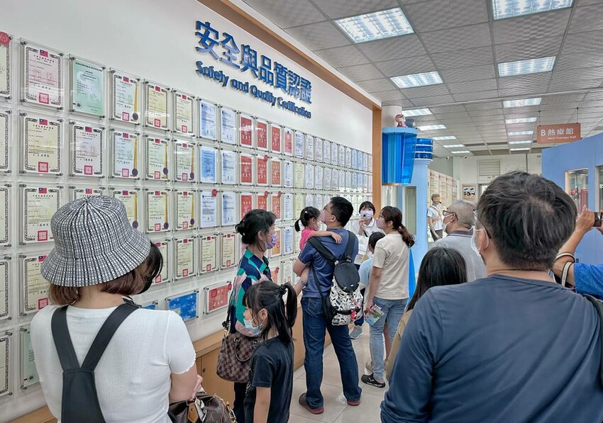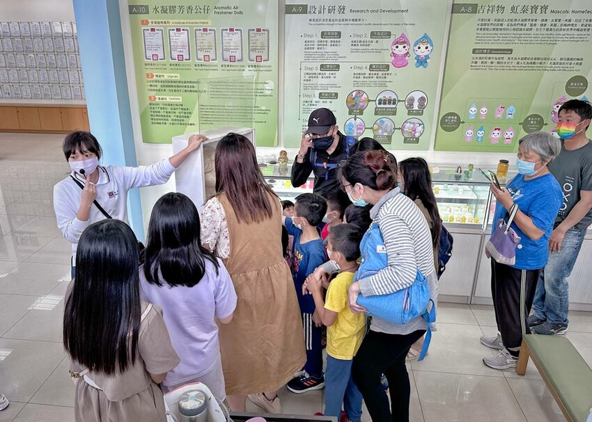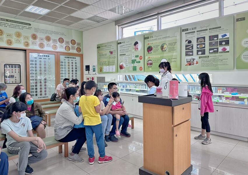 導覽人員會在芳香館、熱療館、電療館與大家做互動,內容有有獎徵答、互動體驗等,藉由著互動式教學讓大家更能了解到水凝膠的應用,也算是在做產品的推廣;另外也能看到虹泰水凝膠世界工廠的生產作業的流程。