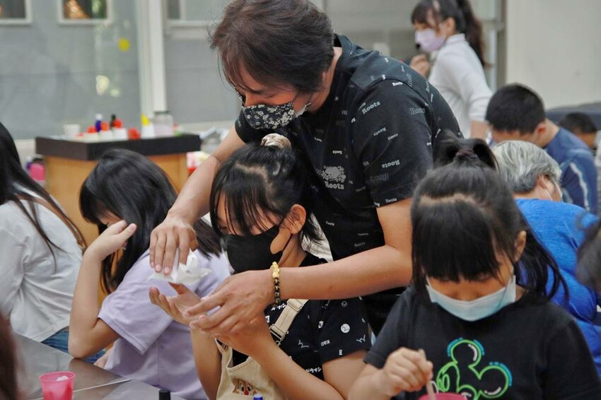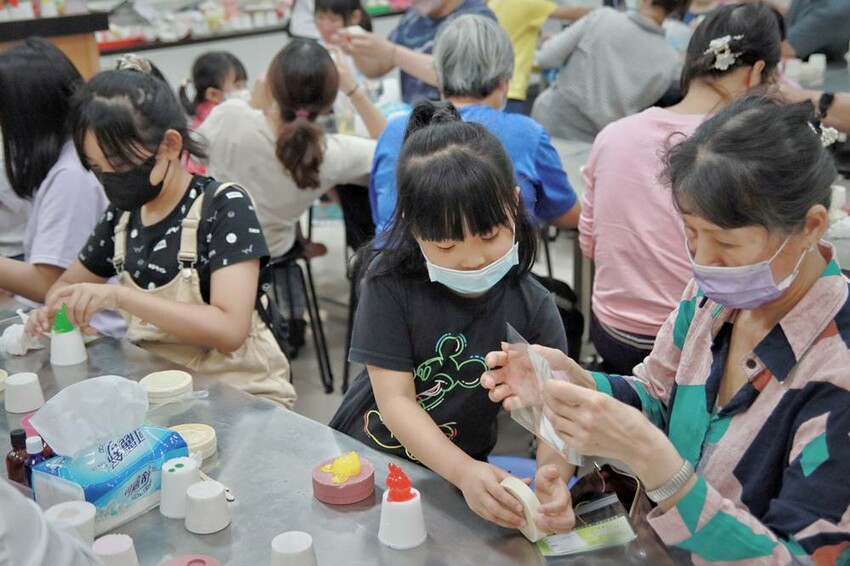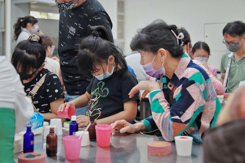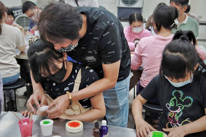 接著才會到大家非常期待的DIY活動,來到DIY區就是先自行找位子,然後仔細聽導覽人員的解說,憑門票去兌換喜歡的顏色(水凝膠)就可以動手做囉!相關材料部份都已經事先準備好,先滴8滴氧化劑攪拌,再滴8滴氧化劑,快速倒入模具內,等候一會就可以再倒出來就是超可愛的芳香公仔,而這天我們所有的DIY公仔全部都交給蔬果姊妹跟阿珠姐來體驗,因為今天這場次的人爆炸多。