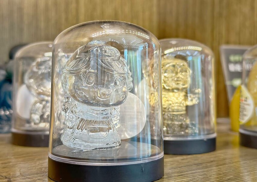 DIY體驗完畢後,導覽人員會帶著大家來到戶外水凝膠公仔花園,主要就是告訴著大家這裡有著魚菜共生的微生物生態系統以及展示他們開模做出大大小小的公仔等,最後再帶著大家回到商品展售區。