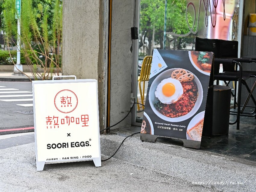 熬匠西屯店位在台中西屯路一段,早上是SOORI EGGS酥皮蛋餅,晚上搖身變成人氣咖哩店熬匠,外觀可以看到SOORI EGGS的蛋型招牌及熬匠的LOGO