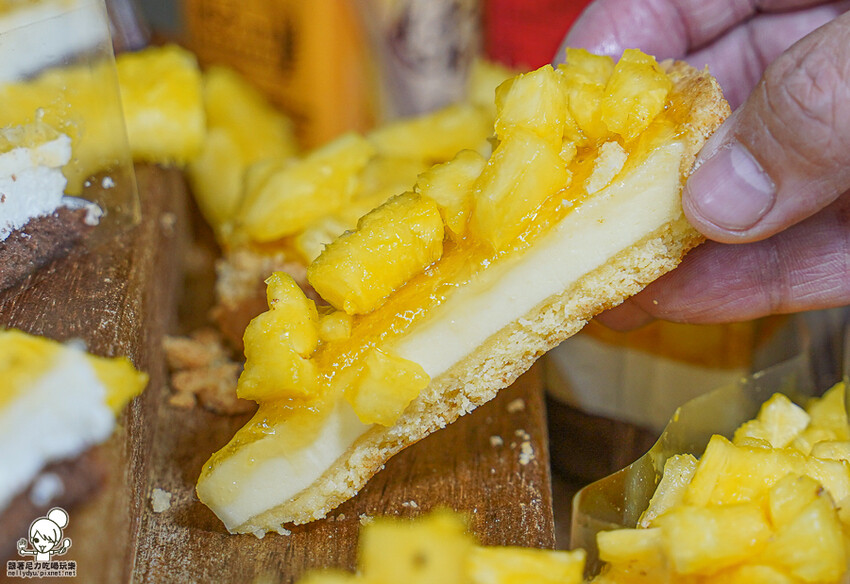 鳳梨用量真的不馬虎,滿滿鳳梨果肉、自製鳳梨果醬,加上鹹香派餅酥脆口感,不甜膩唷!