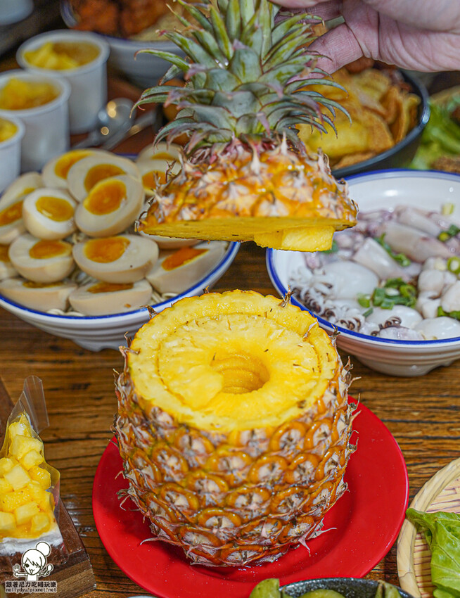 每一桌直接都是霸氣送上一顆切割好的鳳梨水果,可以等待先吃