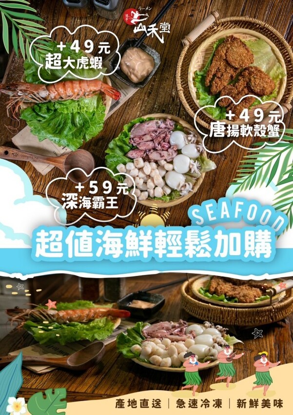 加購:超大虎蝦49元、深海霸王 59元、軟殼蟹 49元