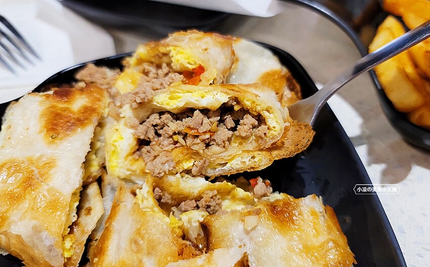 這邊的蛋餅皮是很酥很香的那一種唷!所以很剛好打中我們的胃~~~
