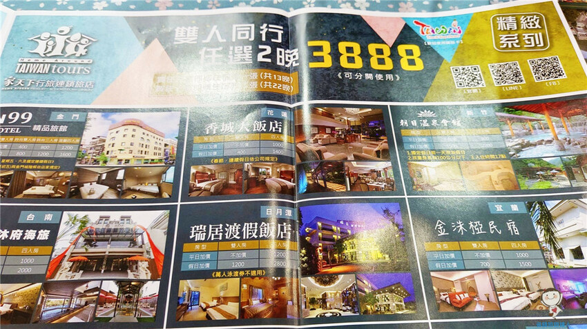 比如說住宿康橋商旅只需$1888,飯店民宿20家聯賣任選2晚才$2888