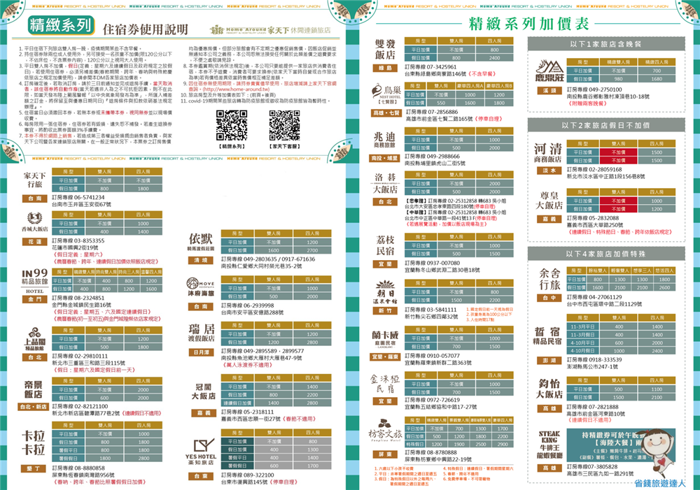 很多縣市都有配合的旅館,但假日幾乎都要加價