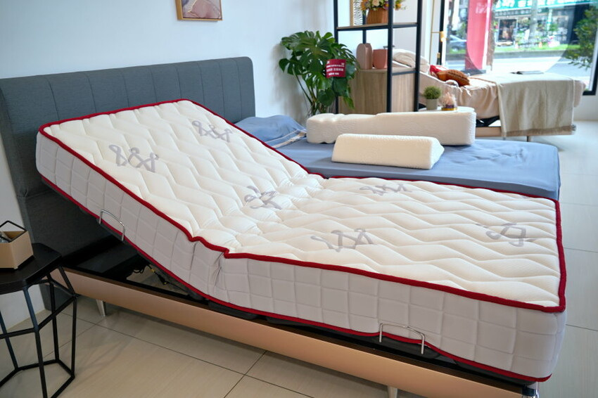 ▼這張就是他們家的頂級電動床A2,而且是有獨家專利的!大家或許有躺過電動床,但一定沒躺過彈簧床墊的電動床~~他們家是全台第一間用不同彈簧結構做出電動床上墊,讓電動床更具支撐力,軟硬度也更能隨自己的身形與喜好來選擇;而且還能搭配不同的襯材,除了乳膠、泡棉之外,還能有更多元化的襯材選擇!