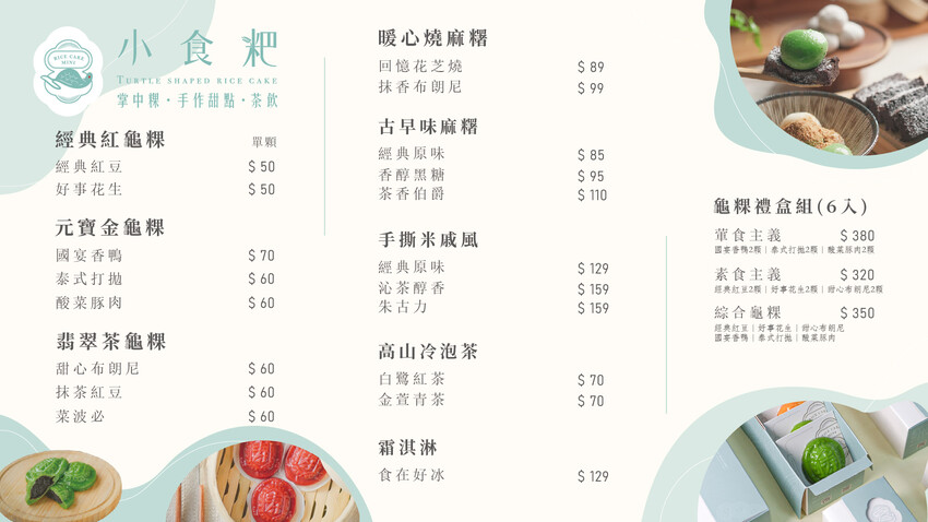 這個是我自己從小食耙粉絲團抓下來的菜單