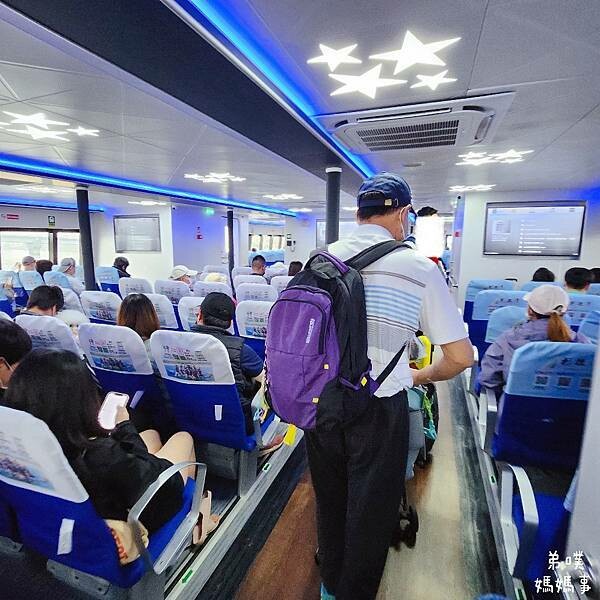 (官網介紹:飛馬3號 最新一代穿浪型雙體高速客輪,長度 30.95m,寬為 10m,載客量192人,該船配備反向船頭,採用柴油噴水推進器。是一艘非常適合高速航行的船隻。)