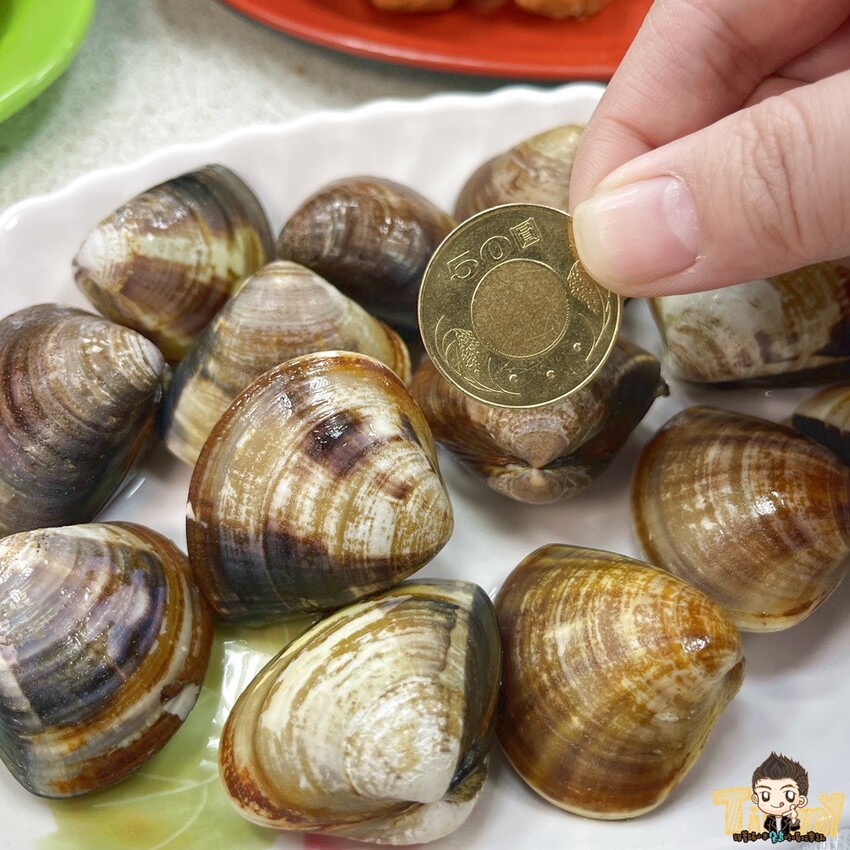 老闆強調海鮮都很新鮮,蛤蠣有特別挑選過,像這樣一盤才150元,每顆都比50元硬幣還大顆耶