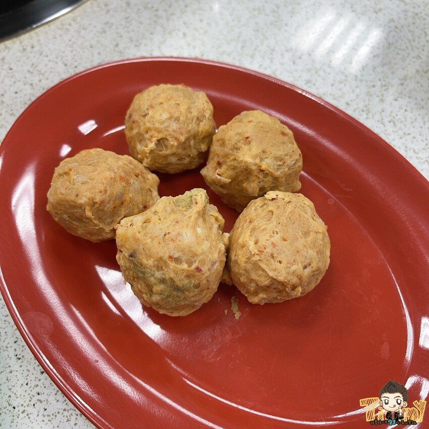 泡菜貢丸(60元)屬於偏辣的口味,挺彈牙多汁的~