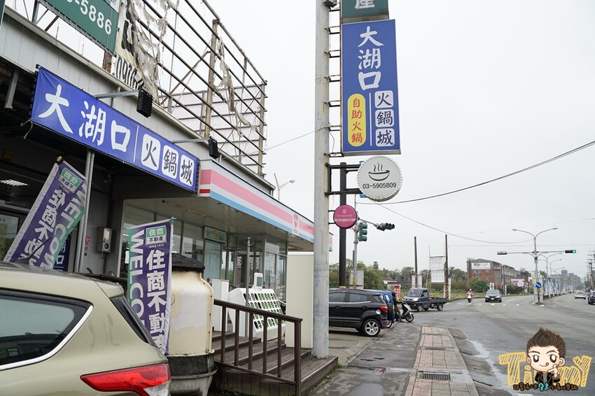大湖口火鍋城就在王爺壟重劃區的中山路上,達生八街的萊爾富旁就是了。
