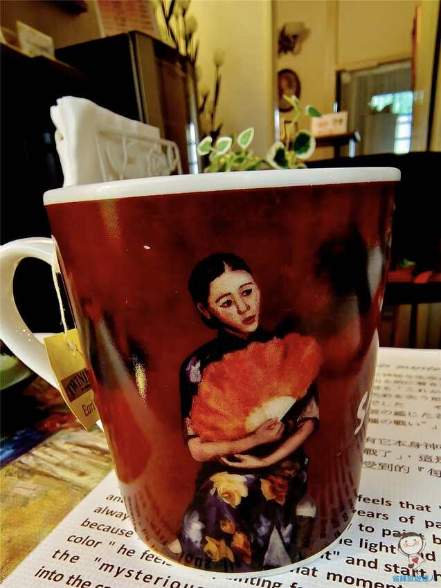 我的馬克杯上還有個穿旗袍的仕女圖,蓓蓓說連杯子和餐桌墊都是藝術品啊!