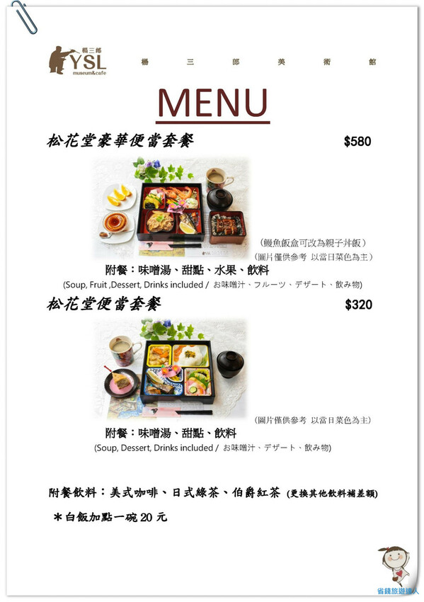 菜單第一頁是它們供應的日式便當套餐,分成$580和$320二種價位