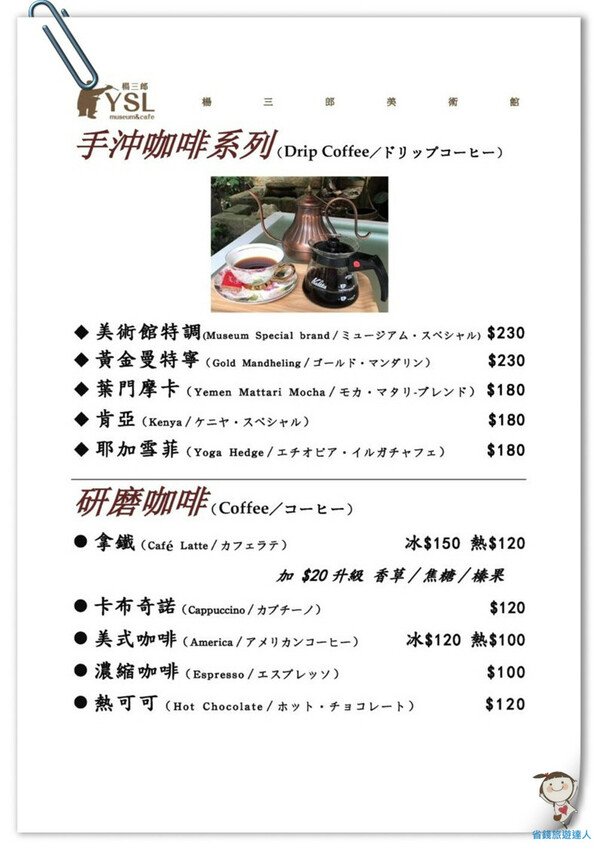 楊三郎美術館有提供專業的手沖咖啡和研磨咖啡