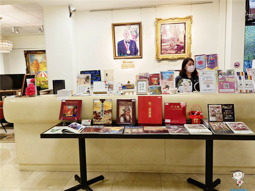 桌子前展示的都是大師作品集,包括畫作和雜誌介紹等