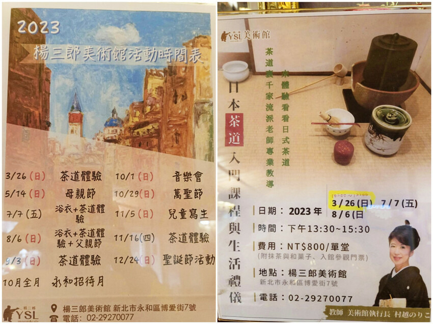 左邊就是2023年楊三郎美術館所推出的各式活動和茶道體驗