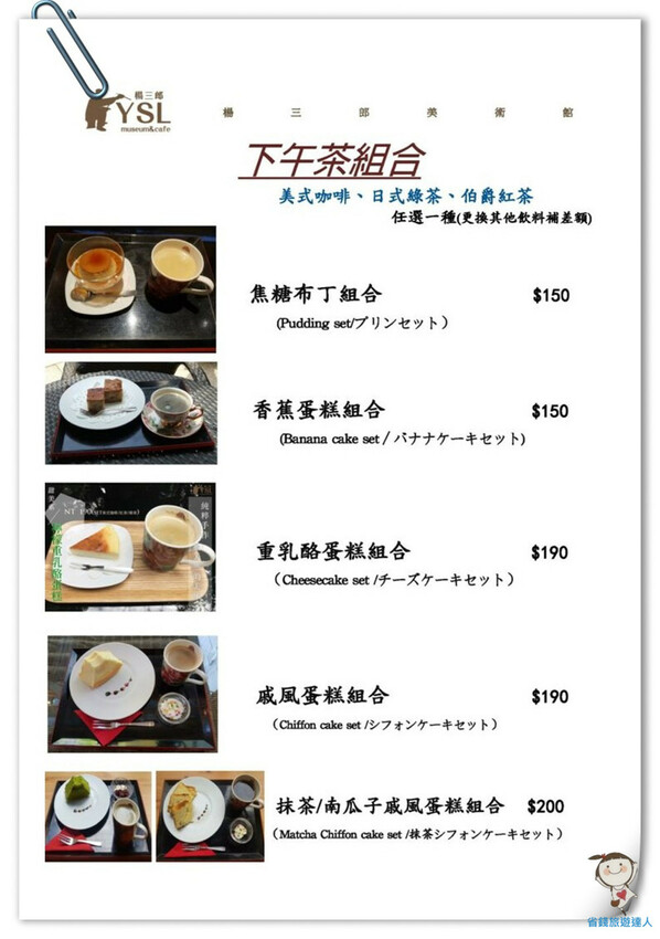 菜單第三頁則是下午茶組合,從$150~200的價位也很親民