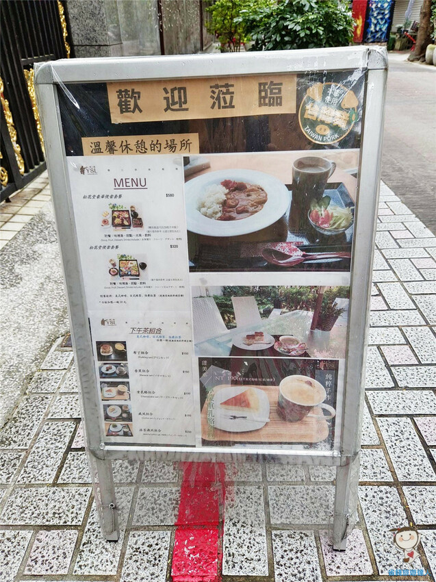 門口的小立牌上還有餐點的照片,告訴大家來參觀美術館還可以順便用餐