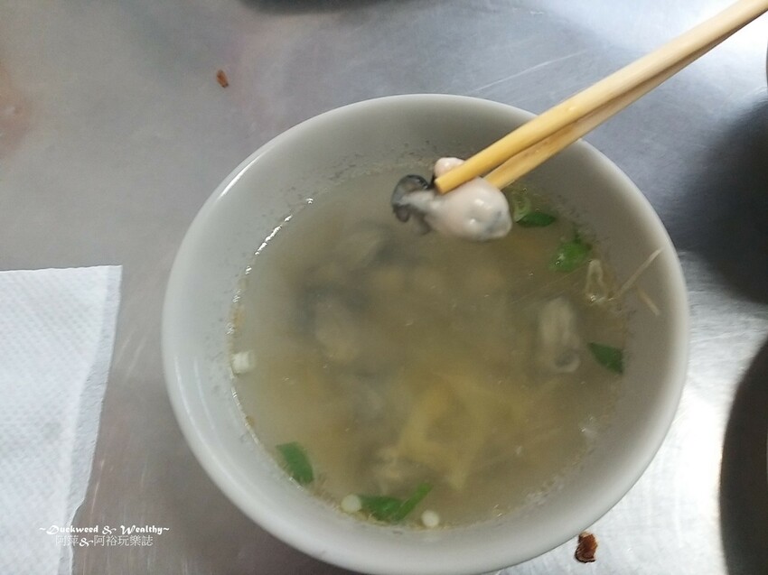 「阿翔蚵仔煎」(鏘鏘鏘炒飯)的蚵仔湯,這蚵仔有夠大顆飽滿鮮美,