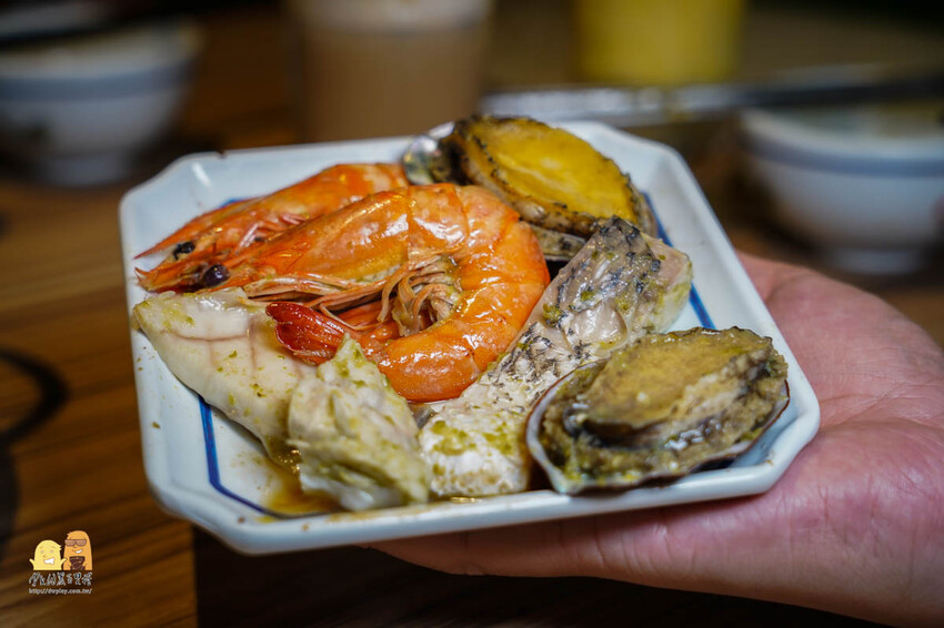 白蝦跟鮑魚都很適合下火鍋,除了熬煮出鮮味之外